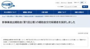 2025年10月1日、「中小企業 新事業進出補助金」の第1回公募の採択結果が公表されました。
